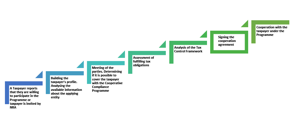 - Mutual transparency – it is the willingness and ability of an applicant entity or entity covered by the Programme and NRA to openly communicate about tax issues. Transparency on the part of NRA means openness in terms of information about the circumstances surrounding questions addressed to the taxpayer and in terms of implementing supervisory actions towards the taxpayer.